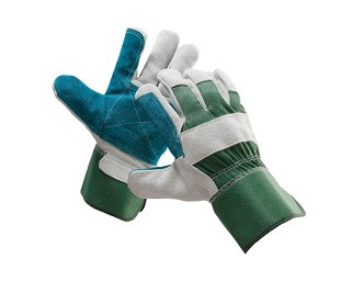 Rukavice z hovězí štípenky s podšívkou a zesílenou vrstvou v dlani. Hřbet rukavic tvoří bavlněná tkanina.