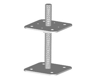 Statická svařovaná dvoudílná kotevní patka s možností výškového nastavení, vyrobená z ocelového plechu a závitové tyče. Používá se pro kotvení tlačených sloupů a pilířů k podkladní konstrukci. Čtvercové podstavy mají délku strany 110 mm. V rozměrech uvádíme výšku patky (H).