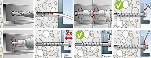 Vysoce výkonné šrouby do betonu pro tu nejsnadnější montáž s možností opakovaného povolení a utažení. Galvanicky zinkovaná ocel zajišťuje velmi dobrou ochranu proti korozi.