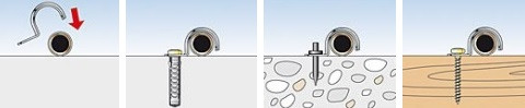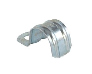 Plechová objímka s galvanizovaným povrchem s jedním upevňovacím bodem pro upevňování kabelových tras a potrubí.