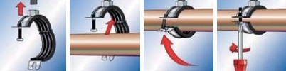 Jednošroubkové objímky FGRS s gumou pro upevňování potrubí.