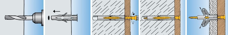 Hmoždinky FU jsou vhodné pro předsazenou montáž do všech druhů stavebních materiálů od síly 6 mm. Požadovaná délka vrutu se počítá jako délka hmoždinky + síla kotveného dílu + průměr vrutu. Průměr vhodného vrtáku je roven průměru hmoždinky.