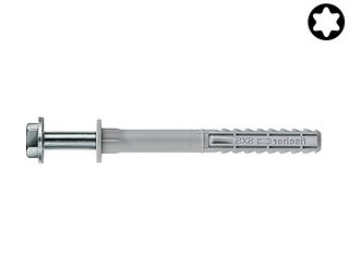 Výkonné rámové hmoždinky s vrutem se šestihrannou hlavou, integrovanou podložkou a drážkou pro bit Torx pro plné stavební materiály.