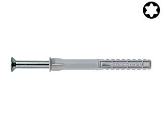Výkonné rámové hmoždinky s galvanicky pozinkovaným vrutem se zápustnou hlavou s drážkou Torx pro plné stavební materiály.