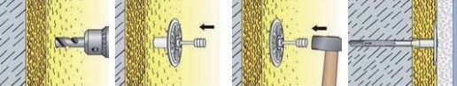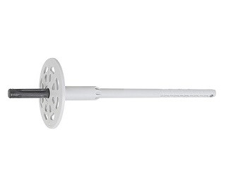 Plastové talířové hmoždinky s předmontovaným ocelovým trnem pro kotvení tepelně izolačních desek.