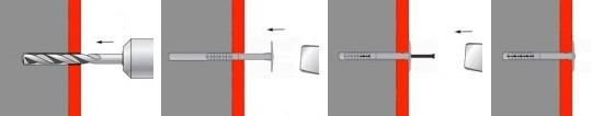 Po naražení hřebu se dřík deformuje řízeným způsobem a díky tomu se správně aplikuje a upevní v podkladovém materiálu. Nenosné krycí vrstvy, jako lepidlo a staré omítky, se musí započítat do potřebné užitné délky. Průměr vhodného vrtáku je roven průměru hmoždinky. Průměr talířku hmoždinky je 60 mm a lze jej zapustit do izolační desky pomocí vhodné frézy.