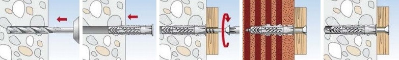 Hmoždinky UX R jsou vhodné pro předsazenou montáž. Při zašroubovávání vrutu se hmoždinka UX R rozepře v plném stavebním materiálu a zauzluje se v dutinách. Pojistky proti protočení ve tvaru pilových zubů zabrání protáčení hmoždinky v otvoru. Díky tomu je zajištěna maximální míra montážní bezpečnosti. Požadovaná délka vrutu se počítá jako délka hmoždinky + síla kotveného dílu + průměr vrutu. Průměr vhodného vrtáku je roven průměru hmoždinky. Vzdálenost kotvení od okraje stěny musí odpovídat alespoň jedné délce hmoždinky.