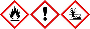 Varování: H226 Hořlavá kapalina a páry * H336 Může způsobit ospalost nebo závratě * H411 Toxický pro vodní organismy, s dlouhodobými účinky * P101 Je-li nutná lékařská pomoc, mějte po ruce obal nebo štítek výrobku * P102 Uchovávejte mimo dosah dětí. * P210 Chraňte před teplem, horkými povrchy, jiskrami, otevřeným ohněm a jinými zdroji zapálení. Zákaz kouření * P271 Používejte pouze venku nebo v dobře větraných prostorách * P273 Zabraňte uvolnění do životního prostředí * P280 Používejte ochranné rukavice/ochranný oděv/ochranné brýle/obličejový štít * P303+P361+P353 PŘI STYKU S KŮŽÍ (nebo s vlasy): Veškeré kontaminované části oděvu okamžitě svlékněte. Opláchněte kůži vodou/osprchujte * P304+P340 PŘI VDECHNUTÍ: Přeneste osobu na čerstvý vzduch a ponechte ji v poloze usnadňující dýchání * P403+P233 Skladujte na dobře větraném místě. Uchovávejte obal těsně uzavřený * P501 Odstraňte obsah/obal ve sběrně nebezpečného odpadu! * Obsahuje: Benzínová frakce (ropná), hydrogenačně odsířená, těžká. Hořlavina II. třídy nebezpečnosti.