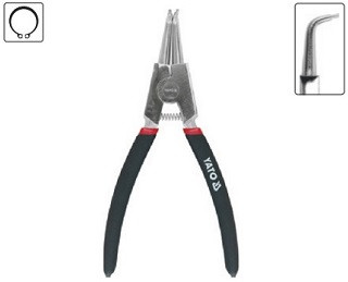 Zahnuté kleště na vnější "ségrové" pojistné kroužky vyrobené z kvalitní chromvanadiové oceli s poniklovaným povrchem a plastem potaženou rukojetí.
