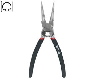 Standardní kleště na vnitřní "ségrové" pojistné kroužky vyrobené z kvalitní chromvanadiové oceli s poniklovaným povrchem a plastem potaženou rukojetí.