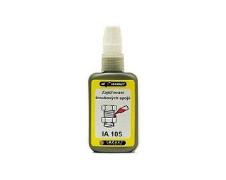 IA 105 je jednosložkové anaerobní středněviskózní lepidlo. Má vysokopevnostní charakteristiku a používá se na zajišťování matic, šroubů, čepů apod. tam, kde je vyžadována maximální bezpečnost. Vytvrzení na pasívních materiálech je možno urychlit použitím aktivátoru AC 64.