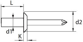 | Rozměr (d1 x L) | Průměr hlavy (d2) | Výška hlavy (k) | Síla materiálu |