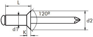 V rozměru uvádíme průměr nýtu x jeho délku / průměr hlavy (talířku).