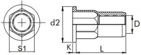 | Rozměr (D x L) | Rozměr šestihranu (S1) | Průměr hlavy (d2) | Výška hlavy (K) | Síla materiálu |