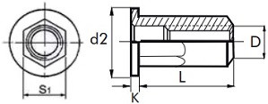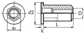 | Rozměr (D x L) | Rozměr šestihranu (S1) | Průměr hlavy (d2) | Výška hlavy (K) | Síla materiálu |