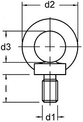 | Průměr (d1) | Závit (l) | Vnější průměr oka (d2) | Vnitřní průměr oka (d3) | Nosnost v tahu |