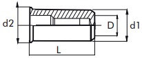 | Rozměr (D x L) | Vnější průměr (d1) | Průměr hlavy (d2) | Síla materiálu |
