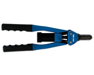 Kvalitní pákové ruční nýtovací kleště pro nýty do průměru 6,4 mm s praktickým prostorem na násady a sběračem trnů pro větší bezpečnost a pořádek.