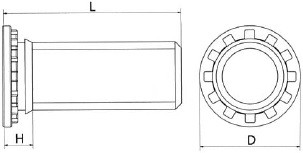 | Závitu | Průměr hlavy (D) | Výška hlavy s osazením (H) | Min. síla materiálu |