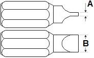 V rozměru uvádíme sílu břitu (A) x jeho šířku (B) x délku bitu.