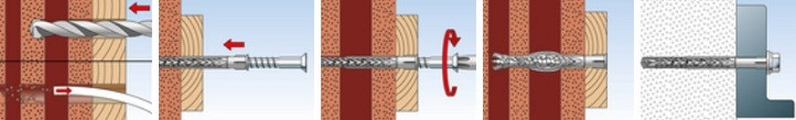 Univerzální rámové hmoždinky s vrutem se šestihrannou hlavou, integrovanou podložkou a otvorem pro bit Torx představující snadné řešení upevnění do mnoha různých materiálů.