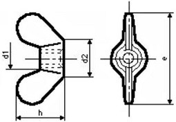 | Průměr (d1) | Vnější průměr matice (d2) | Výška (h) | Šířka (e) |