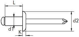 | Rozměr (d1 x L) | Průměr hlavy (d2) | Výška hlavy (k) | Síla materiálu |