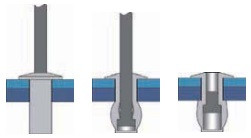 V rozměru uvádíme průměr nýtu x jeho délku / průměr hlavy (talířku). Trn je uzavřen uvnitř nýtu po zanýtování nevypadne.