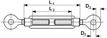 | Závit | Celková délka (L1) | Vnitřní délka (L2) | Průměr oka (D1) | Síla oka (D2) | Nosnost |