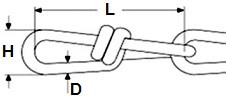 | Průměr řetězu (D) | Výška oka (H) | Délka oka (L) | Nosnost |