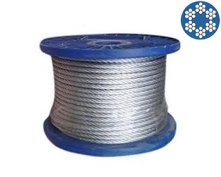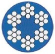 Šestipramenné pozinkované ocelové lano s pravým křížovým vinutím 6x7 v PVC (viz obrázek).