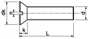 | Průměr (d) | Šířka drážky (n) | Průměr hlavy (dk) | Výška hlavy (k) |