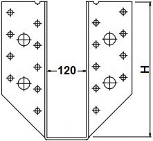 Statický třmen s otvory, vyrobený z ocelového pozinkovaného plechu o síle 2 mm.