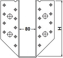 Statický třmen s otvory, vyrobený z ocelového pozinkovaného plechu o síle 2 mm.