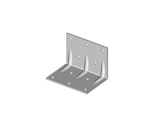 Konstrukční úhelník s otvory, vyrobený z ocelového pozinkovaného plechu o síle 1,5 mm.