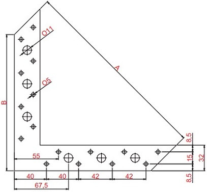 Statická rohová spojka s otvory, vyrobená z ocelového pozinkovaného plechu o síle 2 mm.